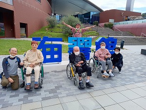施設に到着間際のサプライズ?になるのかわかりませんが、日頃から自転車に乗っている雄姿を見せようとお披露目の場を設けました