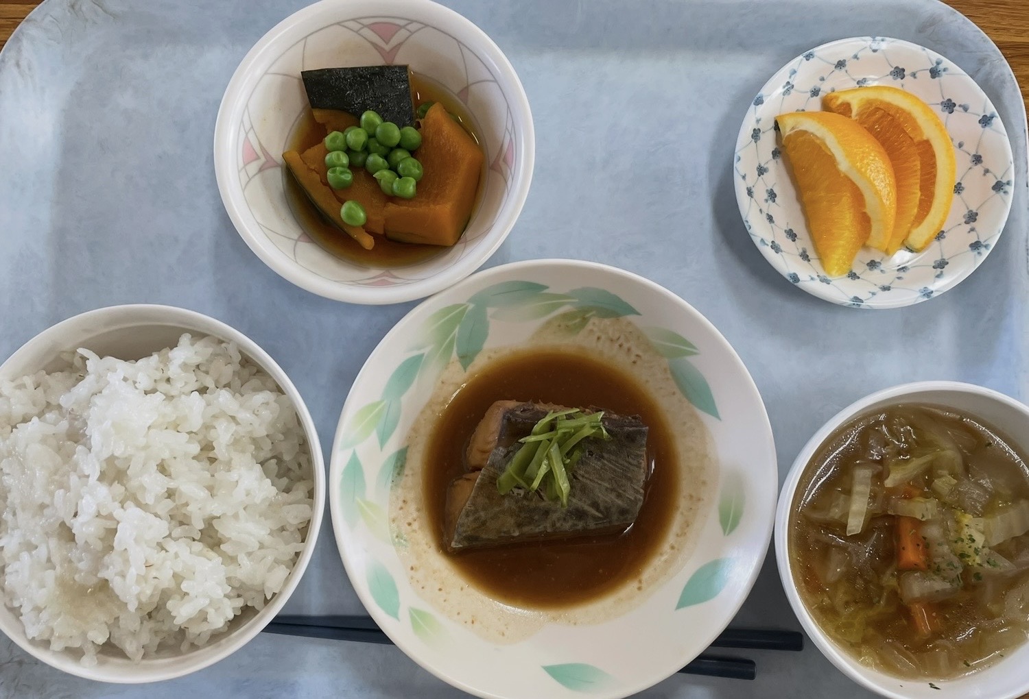 本日の椎ノ木荘の昼食は、脂ののった「ブリの煮付け」が主役です。