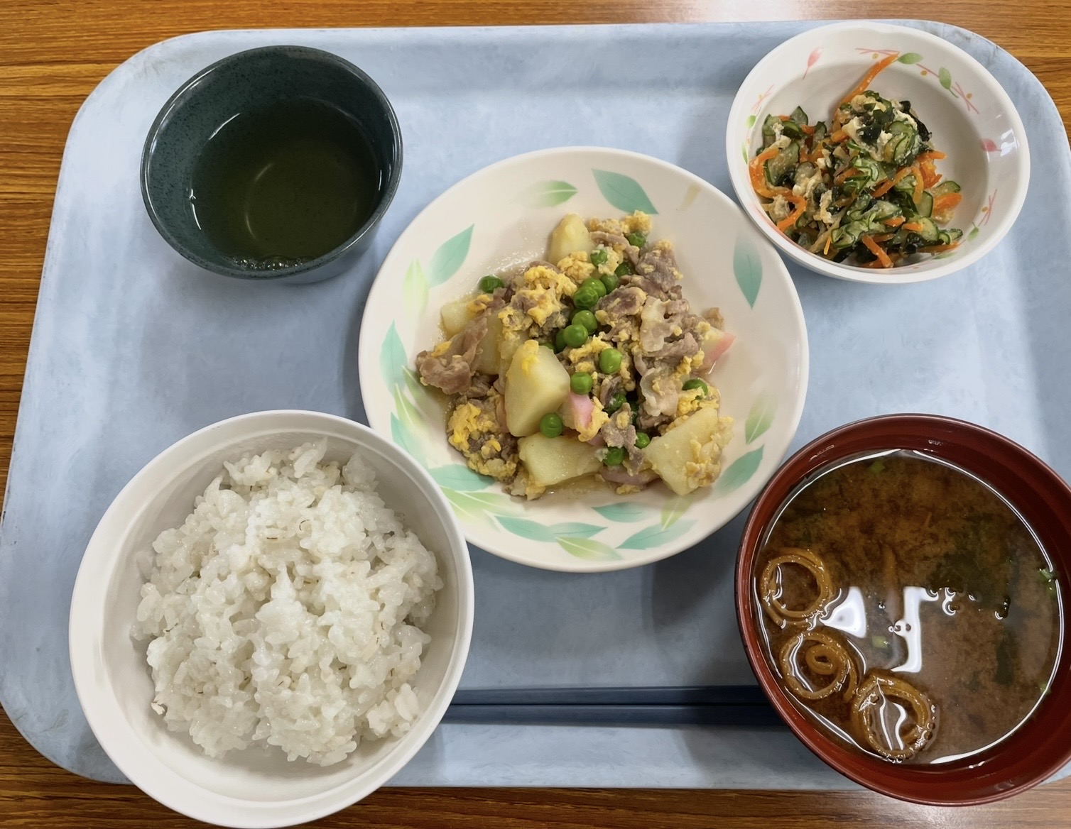 本日の開花煮には、ホクホクのじゃがいもや色鮮やかなグリンピース、そして可愛らしいピンクのかまぼこも添えられ、まさに食卓に花が咲いたような彩りとなりました。